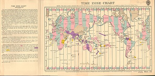 World map of time zones in 1928